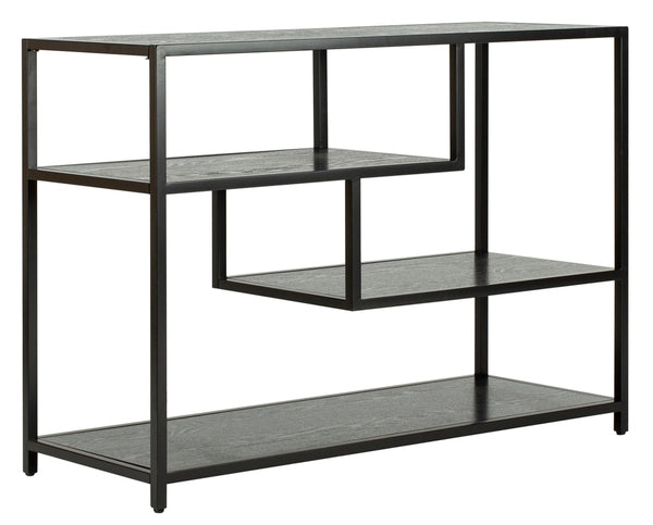 Inspired by bold modern art and architecture, this Reese Geometric Console Table stores and displays objects with depth and dimension. Its black monochrome finish highlights its clean lines and complements any living room décor.