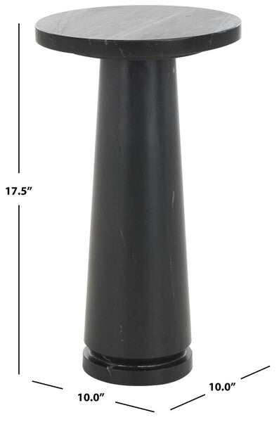 Uplift any corner of your home with the sculptural beauty of Valentina round accent table. The round profile of the table is juxtaposed against the solidarity and hardiness of marble. Crafted entirely in real black marble, the table stands upon a refined and sculptural pedestal. Both alluring and visually dynamic, our accent table celebrates the natural veining and tonal variations of marble. It can serve as a sleek and stylish accent to complement your cocktail hours or beautifully display your favorite decor items.
